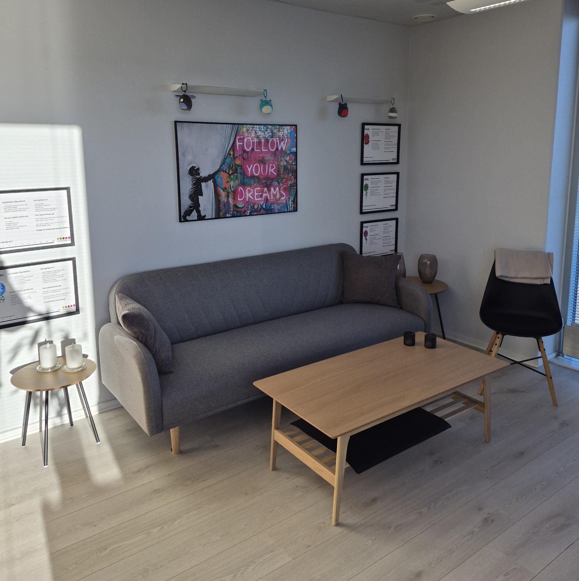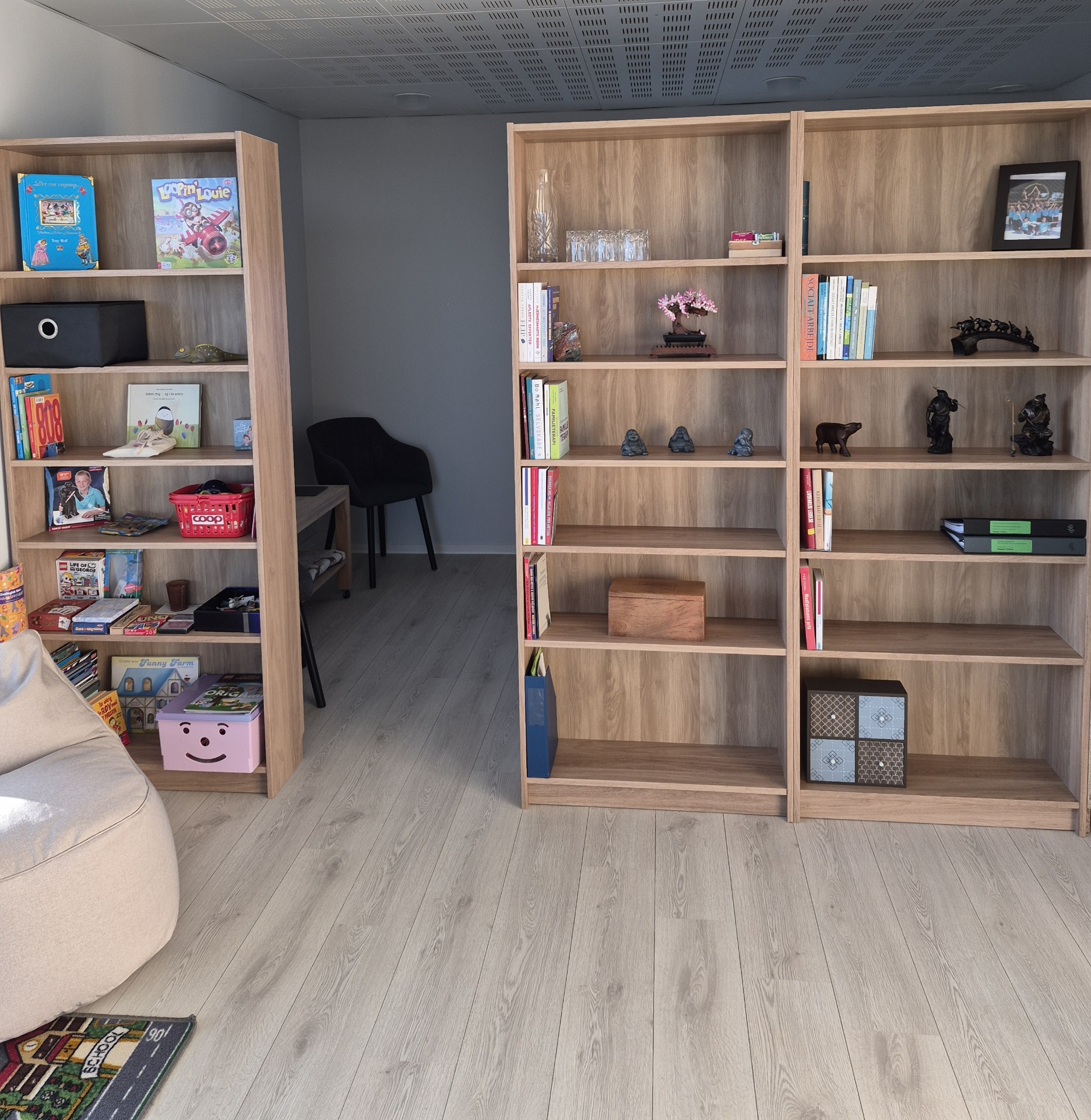 Vores lokale er designet med fokus på komfort og beroligende atmosfære, hvilket gør det til det ideelle sted for samvær, familiesamtaler og ungesamtaler. Her kan både børn, unge og voksne mødes i trygge rammer.